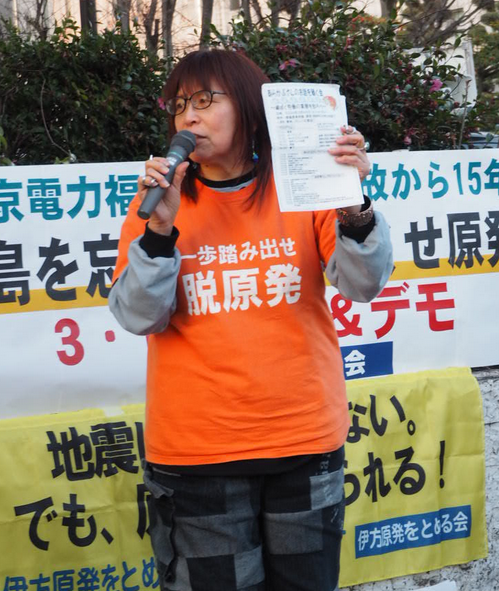 私たちは福島の原発事故が人災だったこと、また15年経っても誰も責任を取ってはいないことを忘れてはならない。福島出身者として伊方原発をとめる会の設立に参加し、原発を止めるための正攻法として裁判を闘ってきたが、未だ止めることができていない。しかし、大英帝国からインドを独立に導いたガンジーは語っています。「正しい運動の歩みはカタツムリのようだが確実に進む」必ず、歴史が原発は動かしてはならないということを証明する日が来る。頑張りましょう。