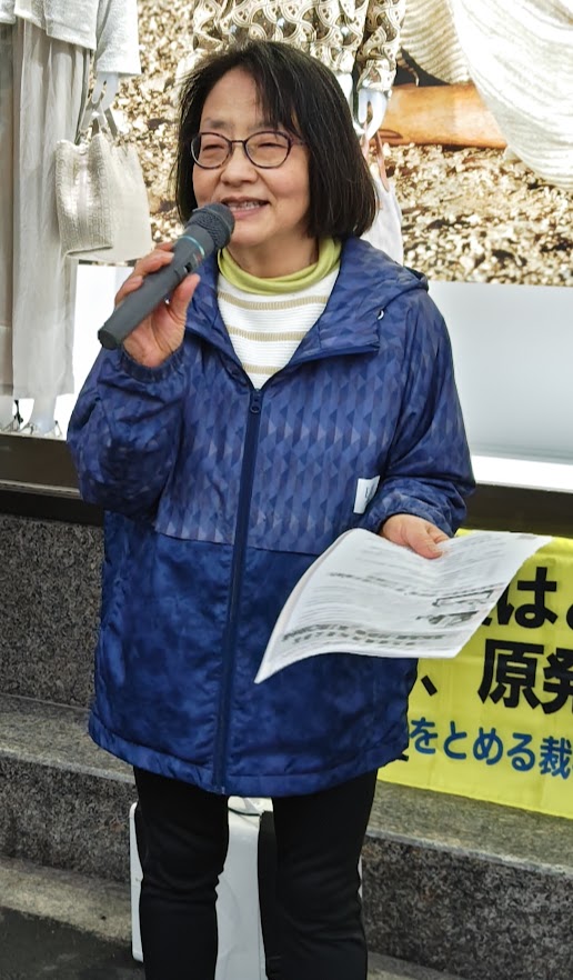 「先日、福島のためにと九州から仲間と福島第一原発の事故処理にあたった人の話を聴いた。彼は被ばくして白血病になり、亡くなった仲間もいた。原発を動かすということは、被ばく労働を強いるということだ。そのことをもっと知ってほしい」