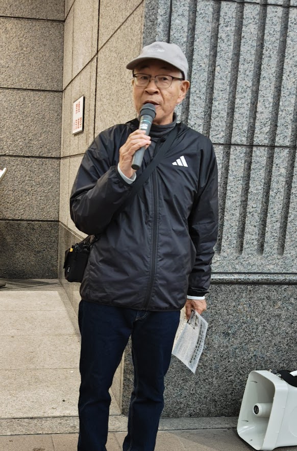 いつものように、リレースピーチ、スタンディング、チラシ配布を11人の参加で行いました。